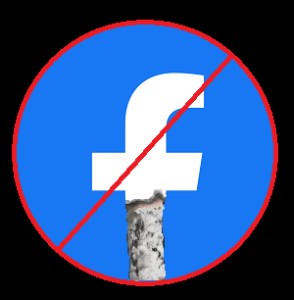 [Image of the a red circle with a diagonal slash through it, around a blue Facebook logo on a black background, the bottom of the “f” rendered as cigarette ash]